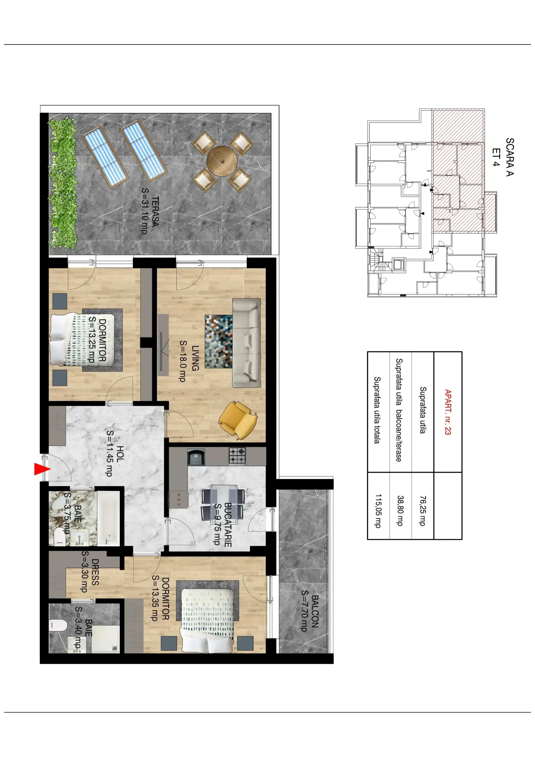 – Suprafață utilă: 76,25 mp