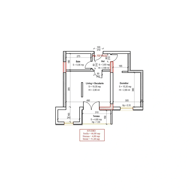 • Suprafata apartament 51.6