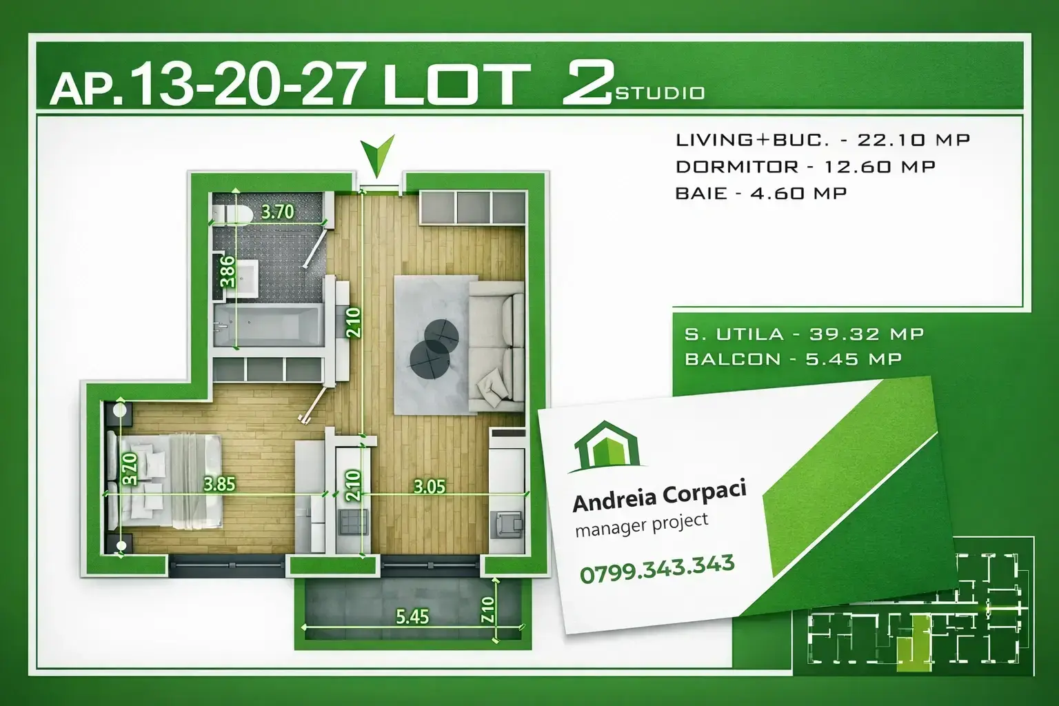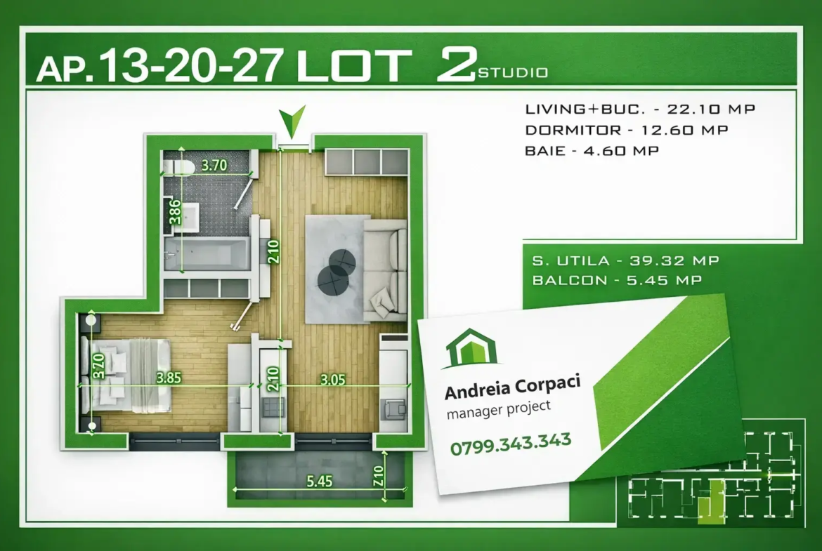 Termen de predare Decembrie 2026 – timp suficient pentru a planifica mutarea. Ideal pentru familii tinere, cupluri sau pentru investiții, apartamentul este luminos, modern și bine compartimentat, parte dintr-un proiect nou, eficient energetic și poziționat strategic.