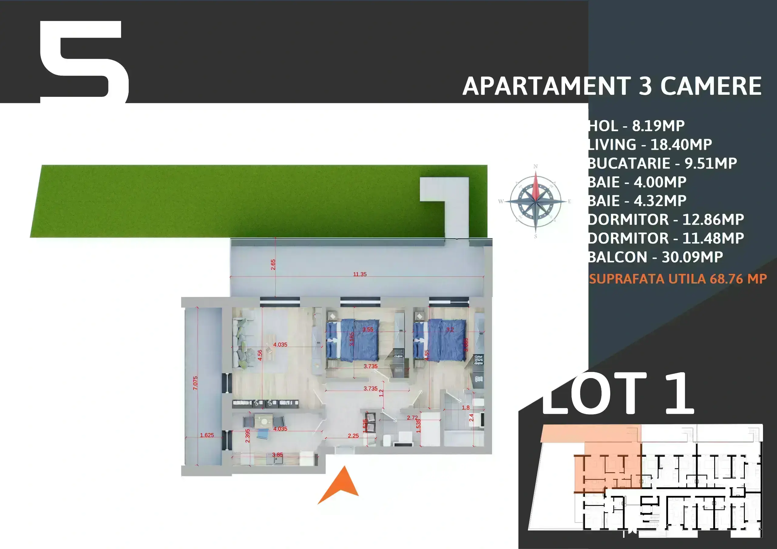 68,54 mp utili + 2 terase (41,58 mp) + grădină proprie de 83 mp!