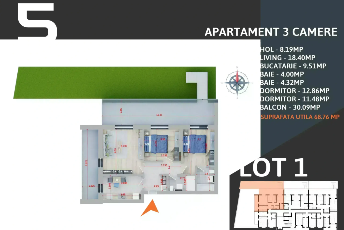 68,54 mp utili + 2 terase (41,58 mp) + grădină proprie de 83 mp!
