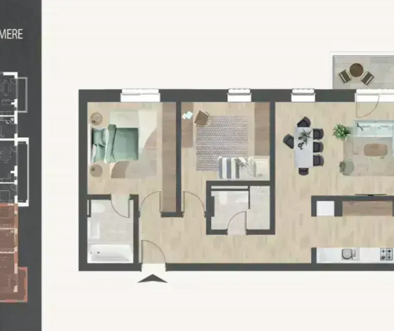 Un apartament gândit pentru viața de familie: camere luminoase, spațiu generos și un balcon unde poți savura cafeaua dimineața, în timp ce copiii se joacă în siguranță.
