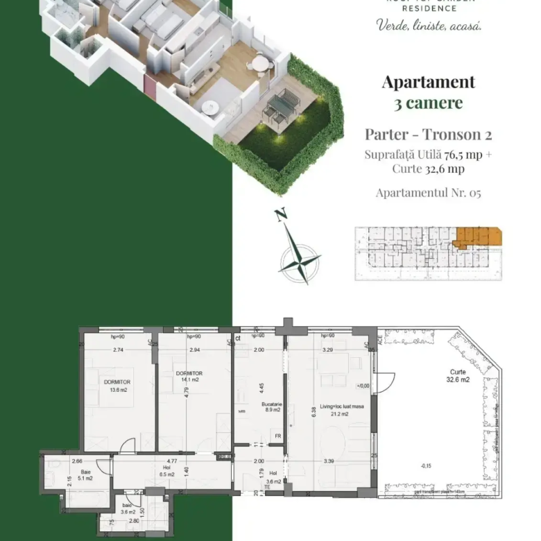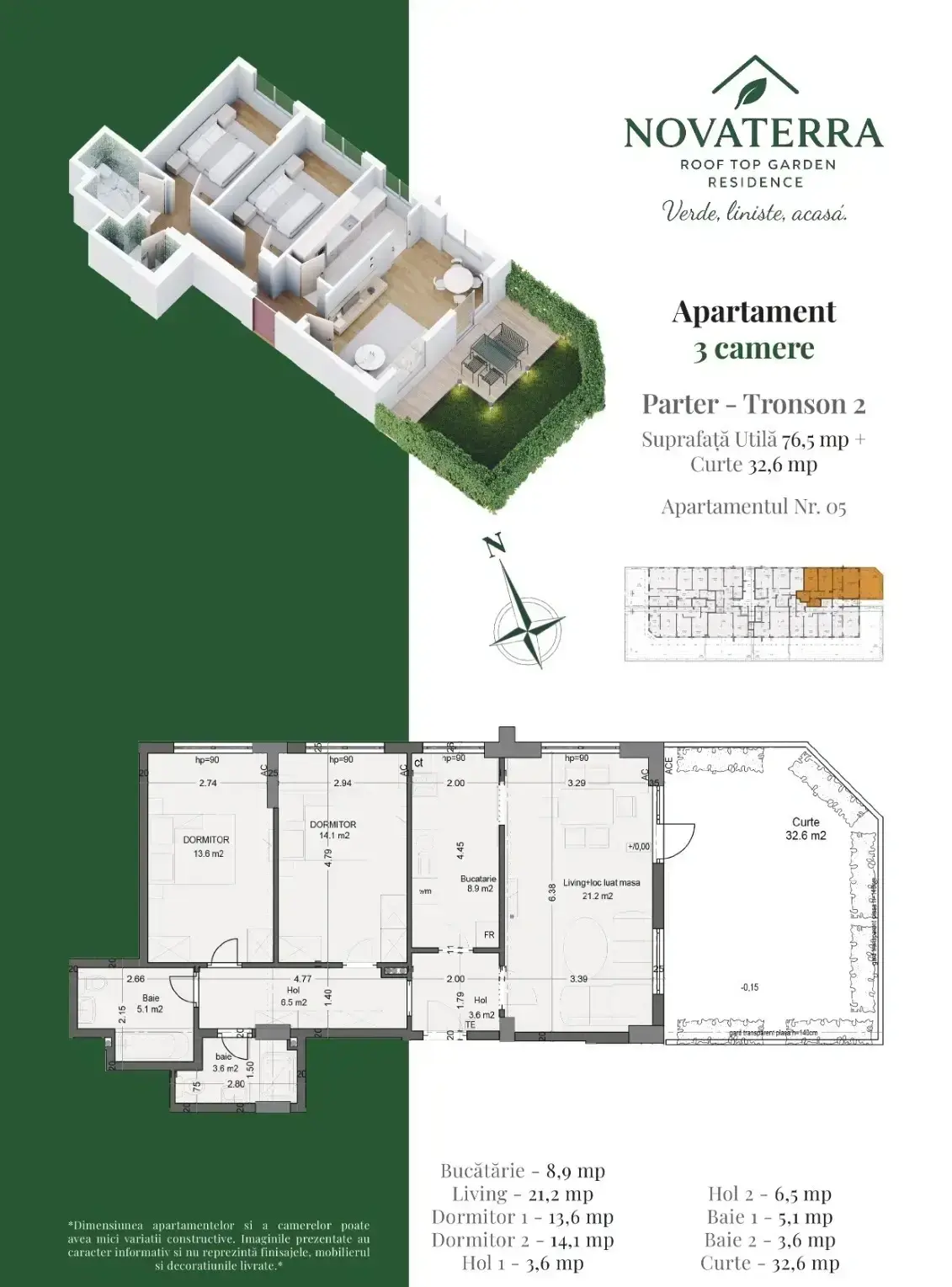 Apartament spectaculos decomandat cu 3 camere, cu o compartimentare practică și o suprafață totală utilă de 109 mp, din care balcon de 32.6, ideal pentru relaxare și petrecerea timpului liber. Proprietatea este situată la parter, într-un bloc nou cu regim de înălțime parter + 3, construit pe cadre din beton și dotat cu lift.
