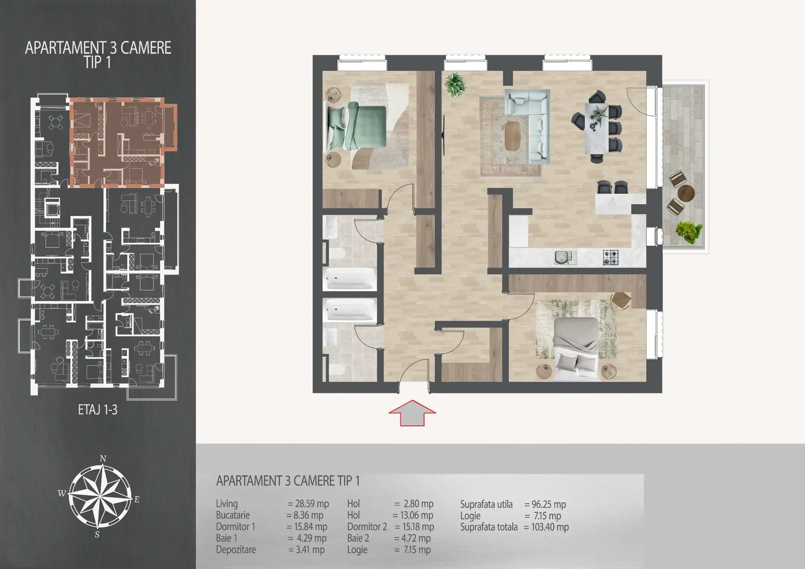 Suprafață 103 m² utili