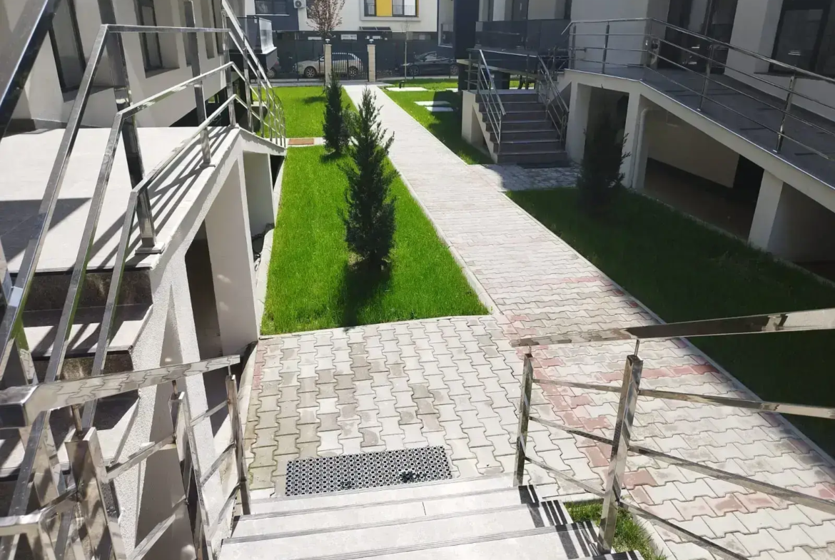 – Spații verzi amenajate, cu locuri de joacă pentru copii și zone de relaxare.