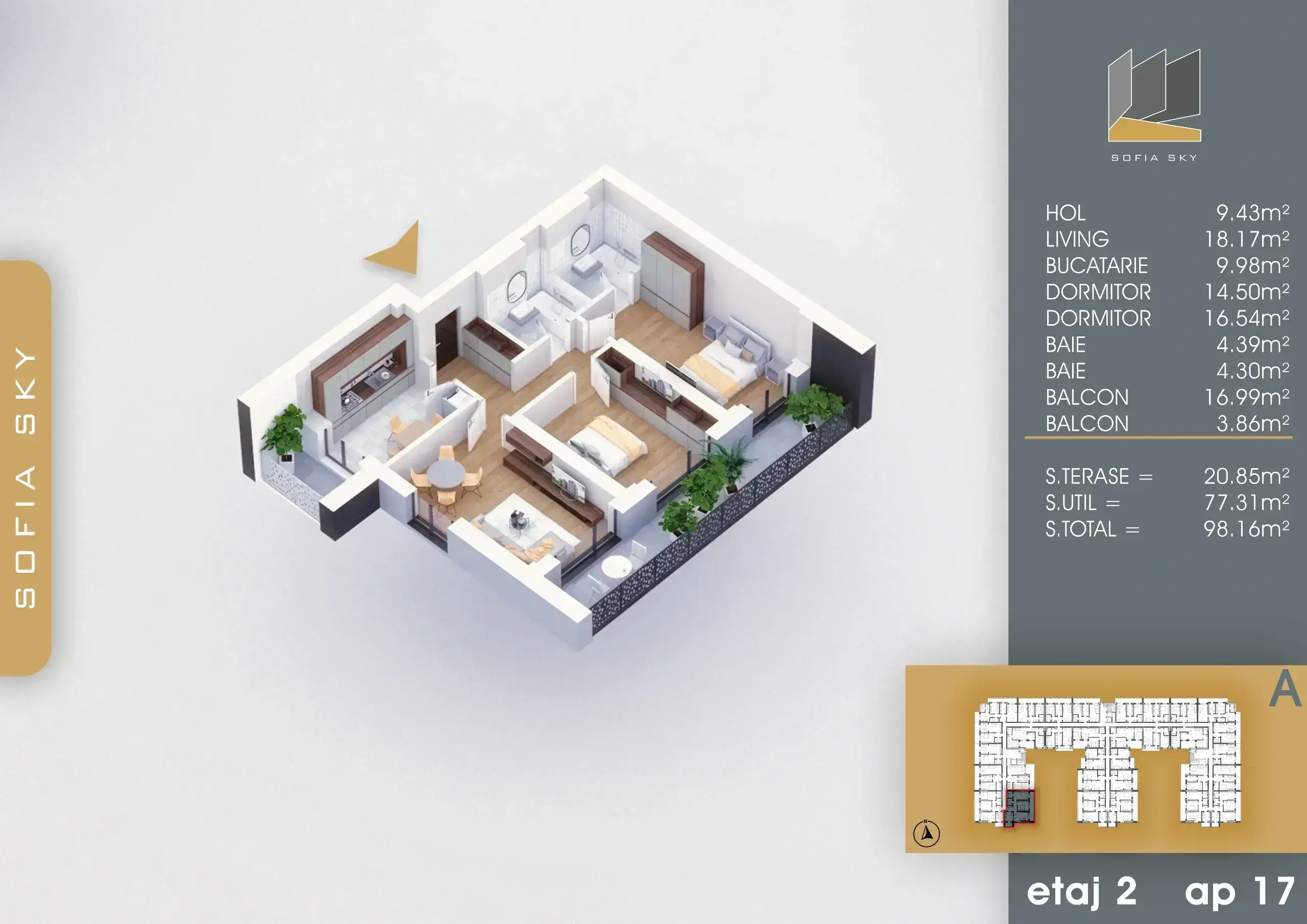 Apartament cu 3 camere intr-un ansamblu rezidential modern, fiecare unitate fiind optimizata pentru a va satisface nevoile.
