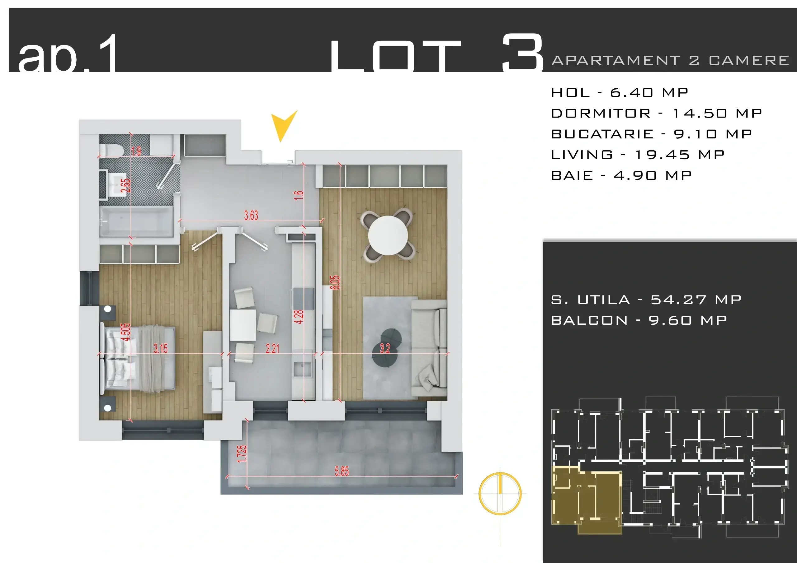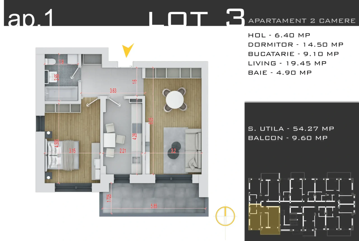 Suprafață utilă: 54.27 mp