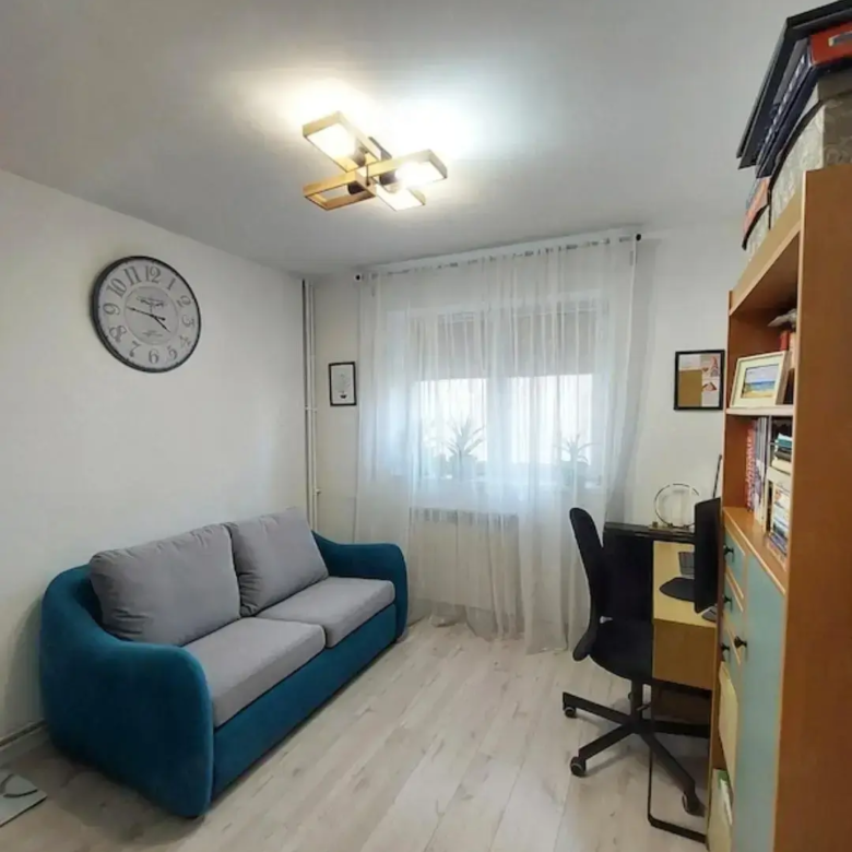 Apartamentul se vinde parțial mobilat și utilat, fiind pregătit pentru mutare imediată. Atmosfera este caldă și echilibrată, cu mobilier ales cu grijă pentru confort și funcționalitate.