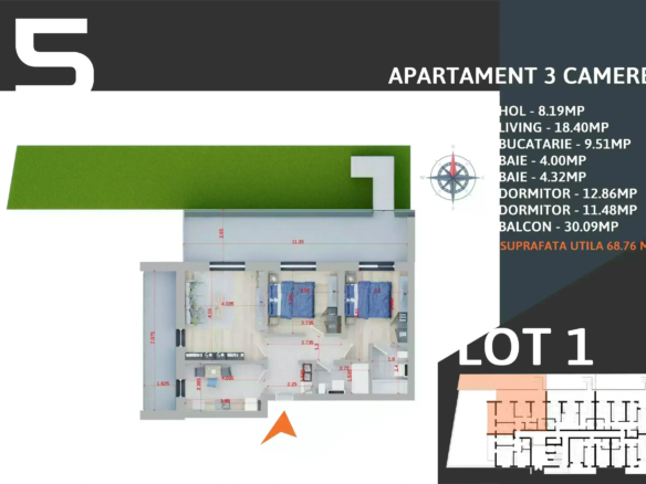 Apartament 3 Camere | 76.20 m² Utili + Terasă 38.89 m²