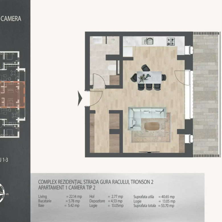 Balcon: 13 mp (excelent pentru relaxare sau spațiu suplimentar)
