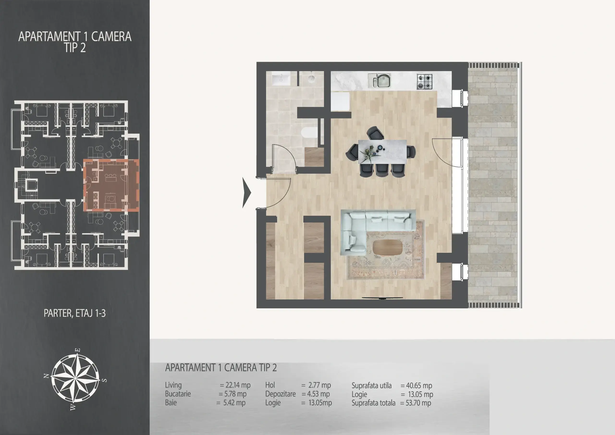 • Suprafață 54 m² utili