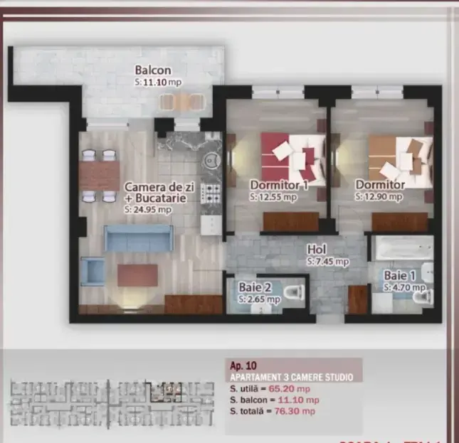 • Suprafata apartament 76.3