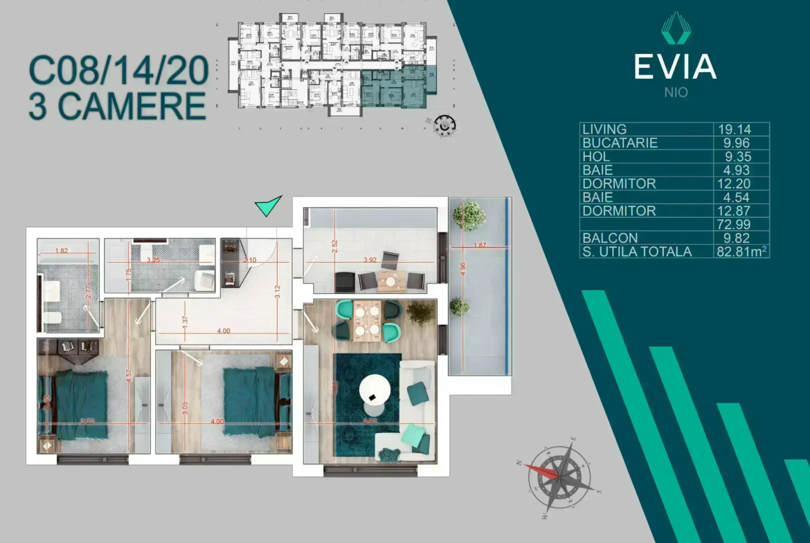 – Spațiu generos: 72.99 mp utili + balcon de 9.82 mp, ideal pentru seri de film în familie sau jocuri cu prietenii.