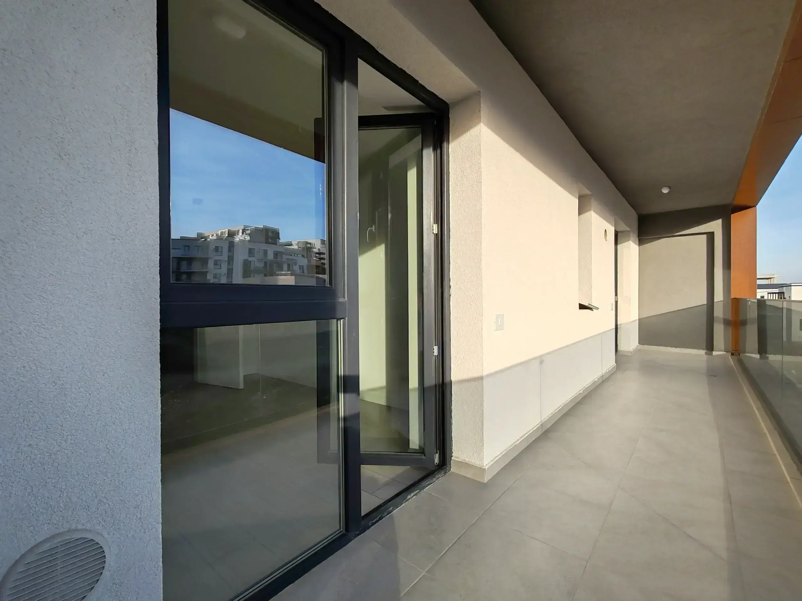 • Terasele apartamentelor dispun de sisteme de balustrade inteligente, din sticlă specială, care pot asigura închiderea parțială sau totală a zonei, atunci când plouă sau iarna, transformând spațiul într-o încăpere suplimentară.