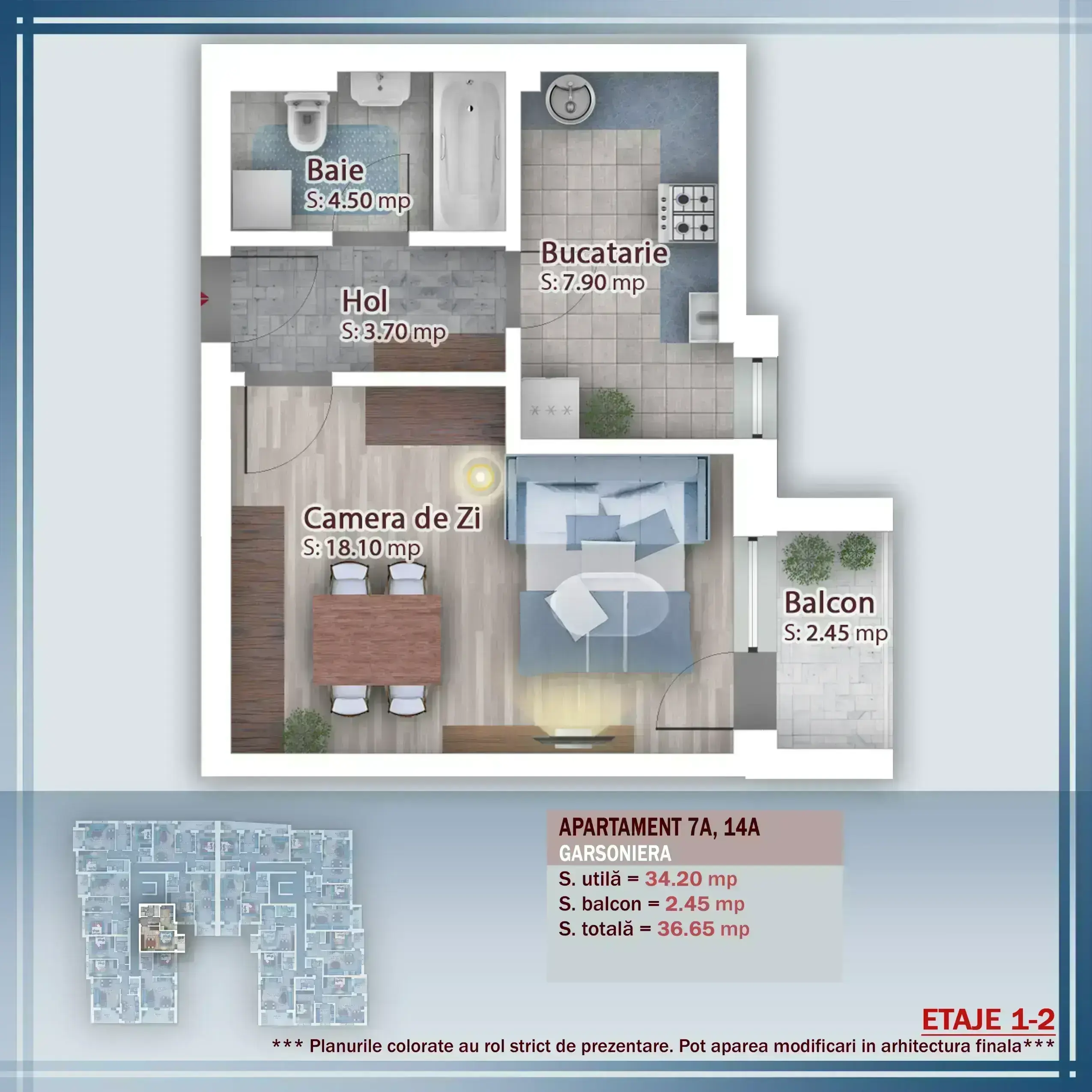 Suprafață totală: 36,8 mp